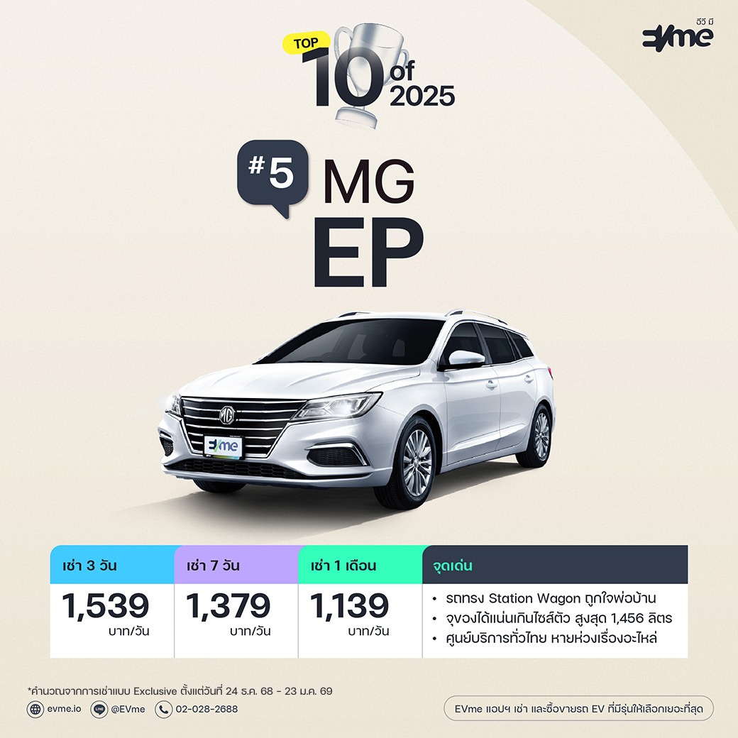 หลังปิดจ๊อบปี 2025 ไปแล้ว EVme นำสถิติหลังบ้านเกี่ยวกับรุ่นรถที่ลูกค้าไว้วางใจและเลือกเช่ามาแชร์ ซึ่งแบรนด์รถยนต์อันดับ 1 ที่ครองใจลูกค้า EVme คือ Tesla ที่ขึ้นชื่อเรื่อง Performance ซอฟท์แวร์ค่อนข้างเสถียร และช่วยเสริมภาพลักษณ์ผู้ขับขี่ ส่วน BYD เป็นรถยนต์ไฟฟ้าแบรนด์จีนขึ้นชื่อเรื่องแบตเตอรี่อึด ขณะที่ MG เป็นแบรนด์รถยนต์ที่มีรถพลังงานไฟฟ้าให้เลือกได้หลากหลาย