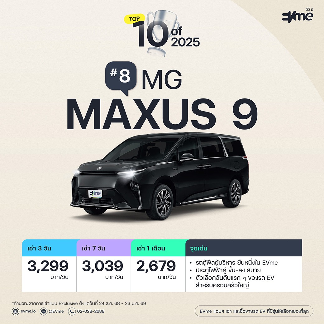 10 อันดับ รถ EV ยอดนิยมประจำปี 2025 ของ EVme มีแบรนด์ไหนบ้าง?