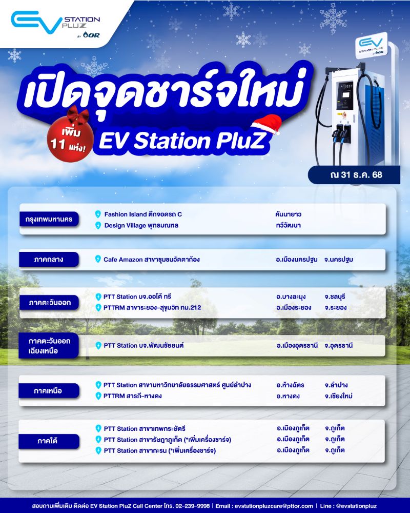 เปิดจุดชาร์จเพิ่ม 11 + 17 แห่งส่งท้ายปี