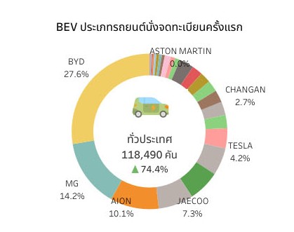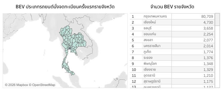 ยานยนต์ไฟฟ้าประเภท Battery Electric Vehicle (BEV) มีทั้งสิ้น147,571 คัน แยกเป็น