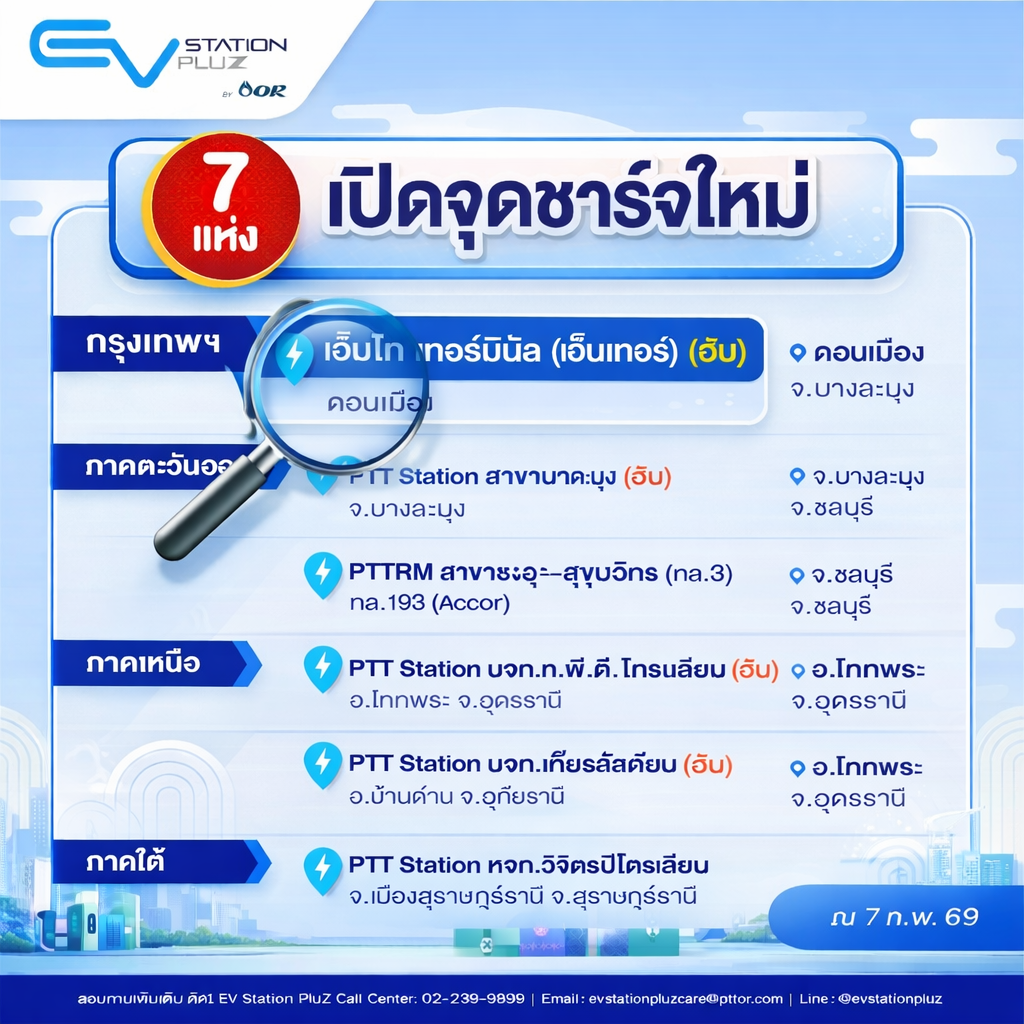 EV Station PluZ เปิดจุดชาร์จเพิ่ม 7 แห่ง มีที่ไหนบ้าง?