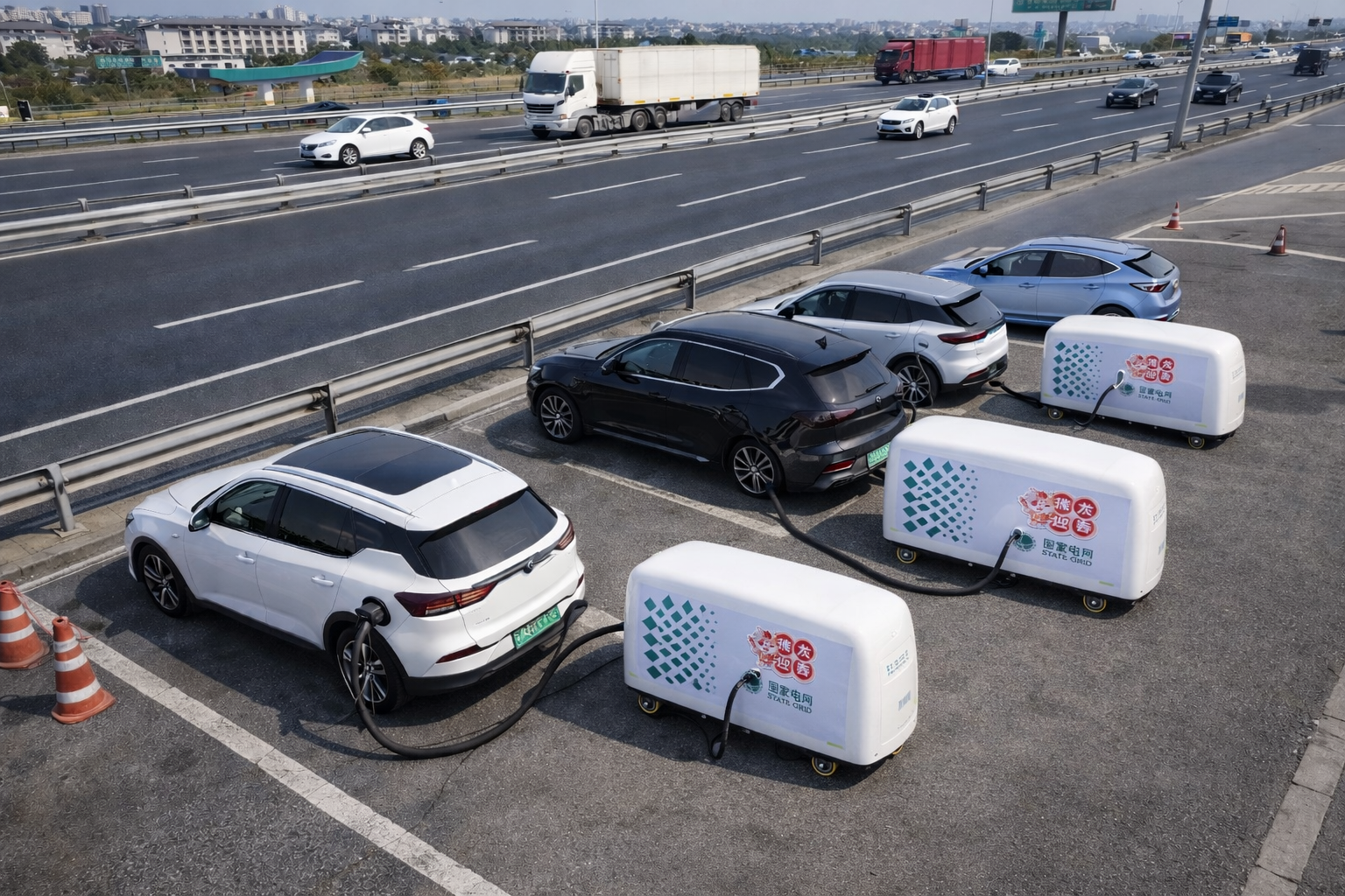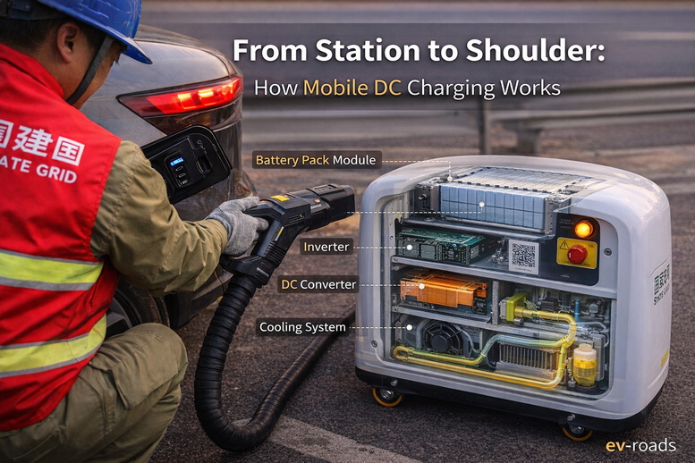 จีนใช้มาตรฐานหัวชาร์จ GB/T ซึ่งรองรับทั้ง AC และ DC แต่ในบริบททางด่วนที่ต้องการลดเวลารอ Mobile Unit มักเป็น DC Fast Charging
