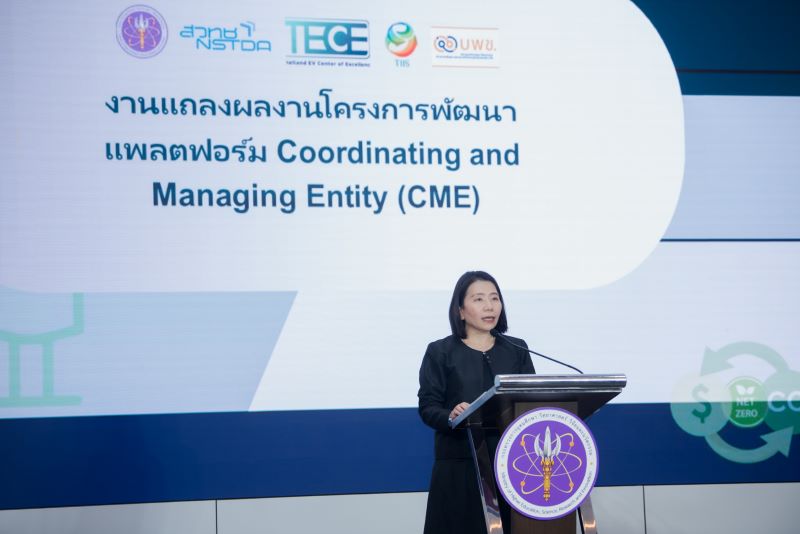 สำนักงานพัฒนาวิทยาศาสตร์และเทคโนโลยีแห่งชาติ (สวทช.) แถลงผลงานโครงการพัฒนาแพลตฟอร์ม Coordinating and Managing Entity (CME) สำหรับการบริหารจัดการคาร์บอนจากการใช้ยานยนต์ไฟฟ้าร่วมกับการจัดทำกรณีศึกษาในพื้นที่นำร่อง (ระยะที่ 1) นวัตกรรมบริหารจัดการข้อมูลคาร์บอนจากการใช้ยานยนต์ไฟฟ้า (EV) ชูจุดเด่นการวัดผลผ่านระบบดิจิทัลที่แม่นยำและตรวจสอบได้ตามมาตรฐานสากล พร้อมประกาศความร่วมมือข้ามภาคส่วนเพื่อขับเคลื่อนไทยสู่ Net Zero ณ อาคารพระจอมเกล้า กระทรวง อว. เมื่อวันที่ 19 กุมภาพันธ์ 2569