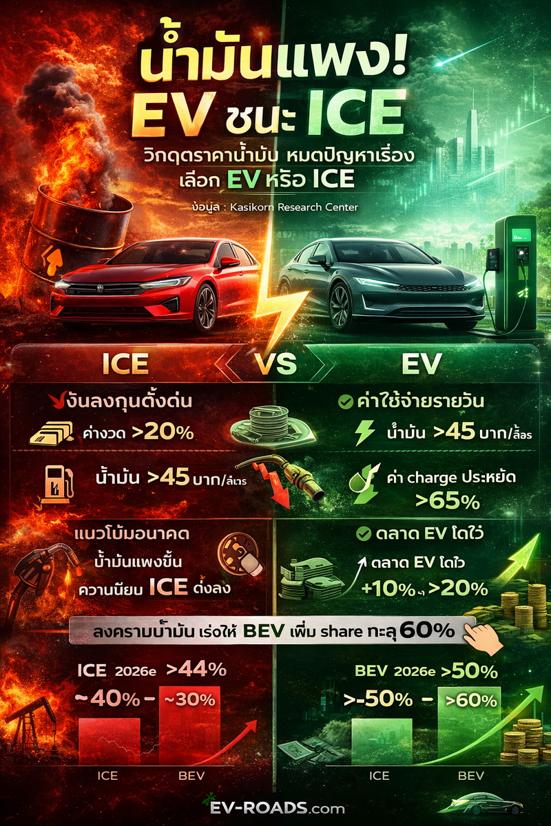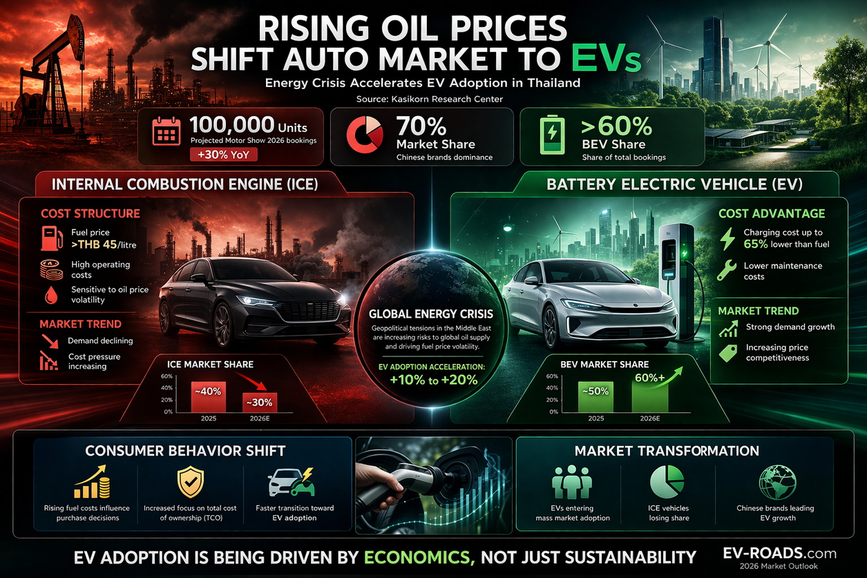 ตัวเลขเหล่านี้ไม่ได้เกิดขึ้นแบบบังเอิญ แต่เป็นผลจากแรงกระแทกระดับโลก โดยเฉพาะ วิกฤตพลังงานจากความขัดแย้งในตะวันออกกลาง ที่กำลังเร่งให้ตลาด EV เติบโตเร็วเกินกว่าที่คาดการณ์กันไว้