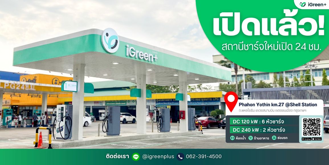 ก่อนหน้านั้นได้ทำการเปิดสถานีชาร์จรถไฟฟ้า iGreen+ Phahon Yothin km.27@Shell Station ภายในบริเวณปั๊มน้ำมันเชลล์ ดอนเมือง (ฝั่งพหลโยธิน) ให้บริการด้วยเครื่องชาร์จ DC 120 kW จำนวน 6 หัวชาร์จ และ 240kW จำนวน 2 หัวชาร์จ