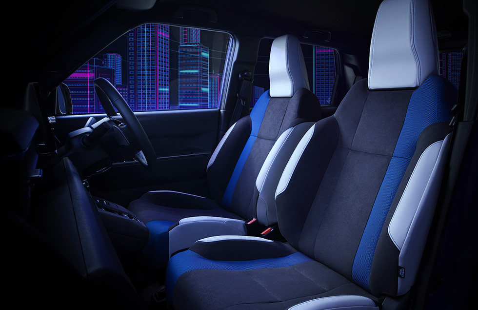เบาะนั่งสปอร์ตถูกออกแบบเฉพาะรุ่น ช่วยยึดตัวผู้ขับให้อยู่ในตำแหน่งที่มั่นคง ขณะที่การตกแต่งภายในแบบไม่สมมาตรด้วยโทนสีน้ำเงินเพิ่มความสนุกสนาน