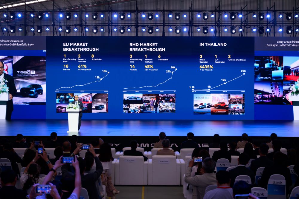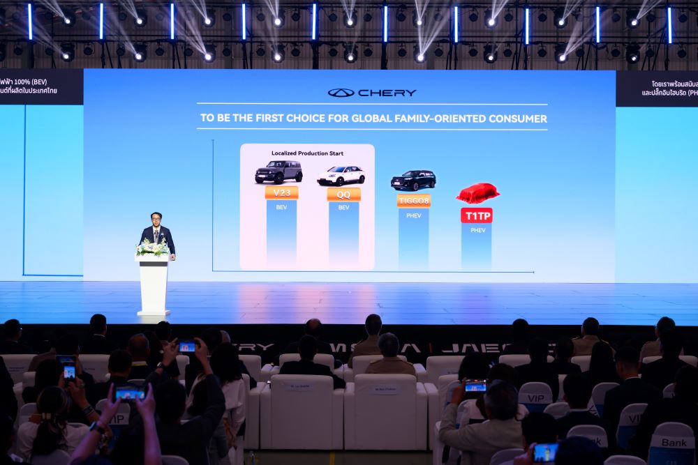 “โรงงาน NEV ในประเทศไทยได้รับการติดตั้งเทคโนโลยีการผลิตขั้นสูง รวมถึงกระบวนการเชื่อมตัวถังอะลูมิเนียม และได้เริ่มเข้าสู่ระยะการผลิตแล้ว โดยในแผนระยะ 5 ปี (2569–2573) Chery Group ตั้งเป้ากำลังการผลิตที่ 80,000 คันต่อปี ตอกย้ำบทบาทของประเทศไทยในฐานะฐานการผลิตเชิงกลยุทธ์สำหรับการเติบโตในภูมิภาค”