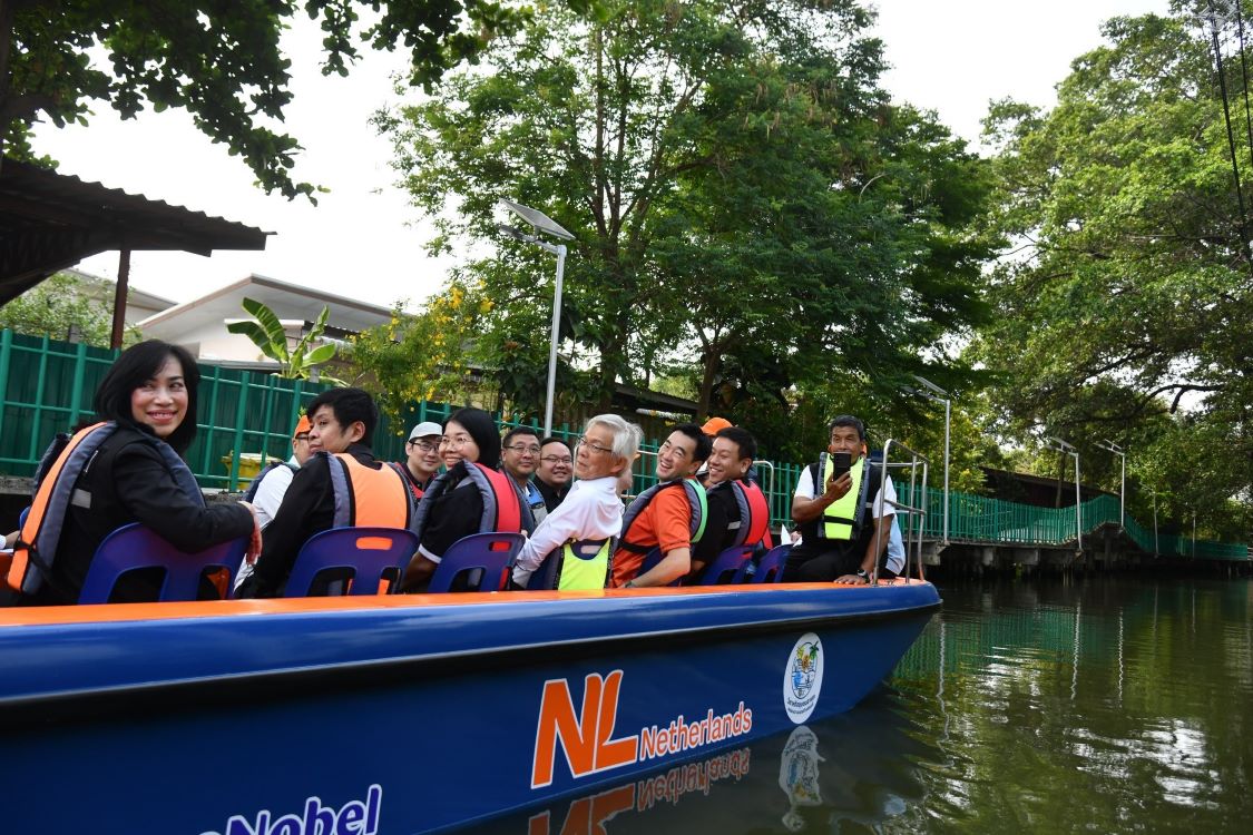 2. ความร่วมมือระหว่างประเทศและสถาบันการศึกษา โครงการนี้เป็นความร่วมมือที่เหนียวแน่นระหว่าง สถานทูตเนเธอร์แลนด์ มหาวิทยาลัยเทคโนโลยีพระจอมเกล้าธนบุรี (มจธ.) และวิสาหกิจชุมชนอารยะบางมด โดยได้ผู้เชี่ยวชาญและผู้นำในด้านการจัดการน้ำจากเนเธอร์แลนด์เข้ามาสนับสนุนการเปลี่ยนผ่านสู่พลังงานสะอาด สะท้อนผ่านตัวเรือสีส้มซึ่งเป็นสีประจำชาติของเนเธอร์แลนด์ และเป็นสัญลักษณ์ของการก้าวสู่ยุคการสัญจรทางน้ำที่เป็นมิตรต่อสิ่งแวดล้อม