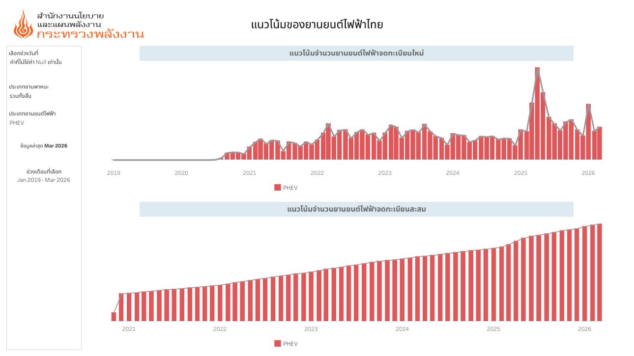อัพเดตยอดจดทะเบียนยานยนต์ไฟฟ้า PHEV ปี 2569