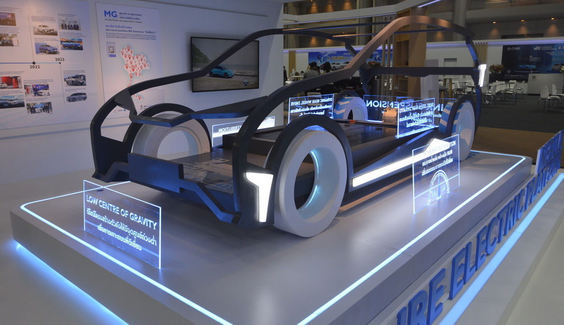 การร่วมจัดแสดงยนตรกรรมในงานมอเตอร์โชว์ครั้งนี้ เอ็มจีได้นำ NEW MG MAXUS 9 รถลักชัวรี่ MPV ไฟฟ้า100% แบบ 7 ที่นั่ง พวงมาลัยขวาคันแรกของประเทศไทยและอาเซียน ที่พร้อมส่งมอบประสบการณ์อีวีสุดหรูหรา เพียบพร้อมด้วยฟังก์ชั่นและฟีเจอร์ล้ำสมัย ผสานอย่างลงตัวกับงานดีไซน์รูปโฉมใหม่ โดดเด่นด้วยหลังคา Dual Panoramic Sunroof ยาวถึงด้านหลัง ทำให้ห้องโดยสารดูโปร่งโล่ง สัมผัสความสะดวกสบายด้วยเบาะนั่งคนขับปรับไฟฟ้า 8 ทิศทาง เบาะนั่งผู้โดยสารปรับอัตโนมัติ 4 ทิศทาง และเบาะนั่งแถวที่สองแบบ VIP Captain Seat ที่มีระบบบันทึก ระบบนวด และสามารถปรับระดับอุณหภูมิได้ตามต้องการ