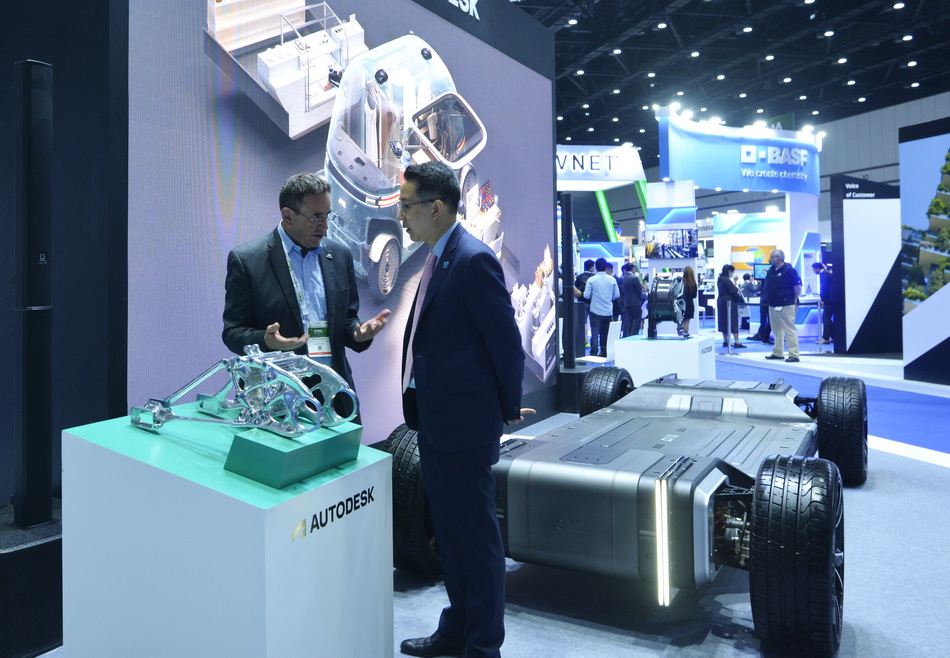 ออโต้เดสก์ (Autodesk) ผู้เชี่ยวชาญด้านการผลิตซอฟท์แวร์อัจฉริยะครบวงจรจากประเทศสหรัฐอเมริกา มีนโยบายสนับสนุนการเปลี่ยนแปลงทางดิจิทัลของอุตสาหกรรมยานยนต์ด้วยเทคโนโลยีขั้นสูง จึงได้นำไฮไลต์ความสำเร็จทางเทคโนโลยียานยนต์ของกลุ่มลูกค้ามาจัดแสดง อาทิ แชสซีรถยนต์อัจฉริยะที่ใช้พลังปัญญาประดิษฐ์ (AI) ตัวแรกของโลก รวมทั้งเทคโนโลยีเจนเนอเรทีฟดีไซน์ (generative design) ที่ทำให้รถแข่งมีน้ำหนักเพียง 570 กก. และสามารถเร่งความเร็วได้ถึง 100 กม./ชม. ภายในเวลาไม่ถึง 3 วินาที รวมถึงการนำเสนอการเปลี่ยนผ่านของเทคโนโลยีผ่านระบบวีอาร์มานำเสนอการออกแบบที่ได้รับแรงบันดาลใจจากธรรมชาติให้ผู้สนใจได้สัมผัสนวัตกรรมแบบเสมือนจริง