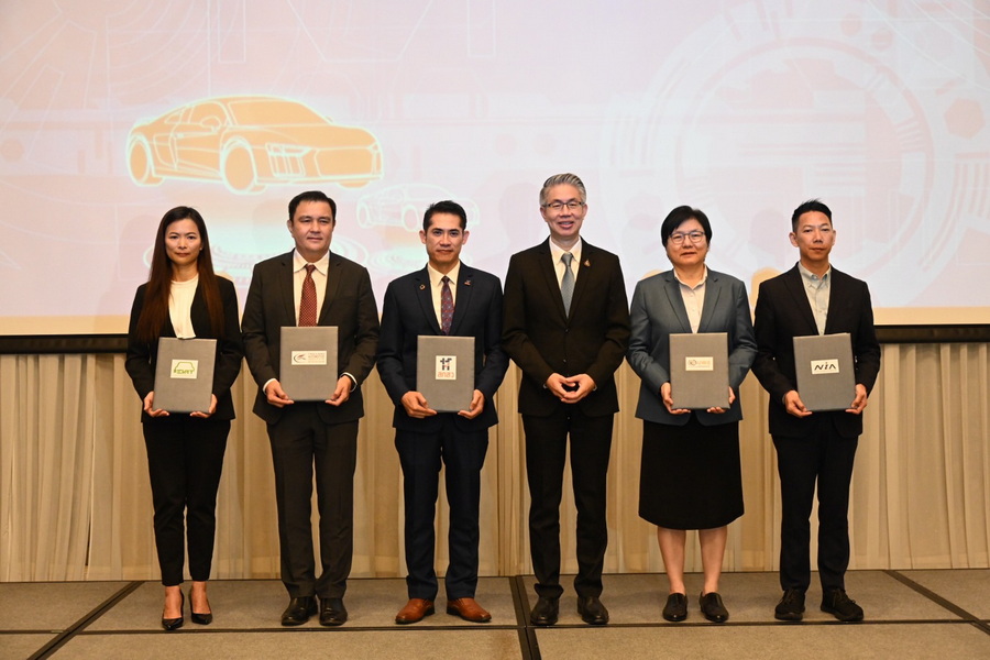 พิธีลงนามครั้งนี้มี ดร.พงศ์พันธ์ แก้วตาทิพย์ รองผู้อำนวยการ สำนักงานคณะกรรมการส่งเสริมวิทยาศาสตร์ วิจัยและนวัตกรรม รองศาสตราจารย์ ดร.สิรี ชัยเสรี ผู้อำนวยการหน่วยบริหารและจัดการทุนด้านการเพิ่มความสามารถในการแข่งขันของประเทศ นายวิเชียร สุขสร้อย รองผู้อำนวยการด้านเศรษฐกิจและสังคม สำนักงานนวัตกรรมแห่งชาติ (องค์การมหาชน) ดร.เกรียงศักดิ์ วงศ์พร้อมรัตน์ ผู้อำนวยการสถาบันยานยนต์ และผู้ช่วยศาสตราจารย์ ดร.มัณฑนา รังสิโยภาส เลขาธิการสมาคมยานยนต์ไฟฟ้าไทย ร่วมลงนามบันทึกข้อตกลงความร่วมมือ ณ โรงแรมแลงคาสเตอร์ กรุงเทพฯ