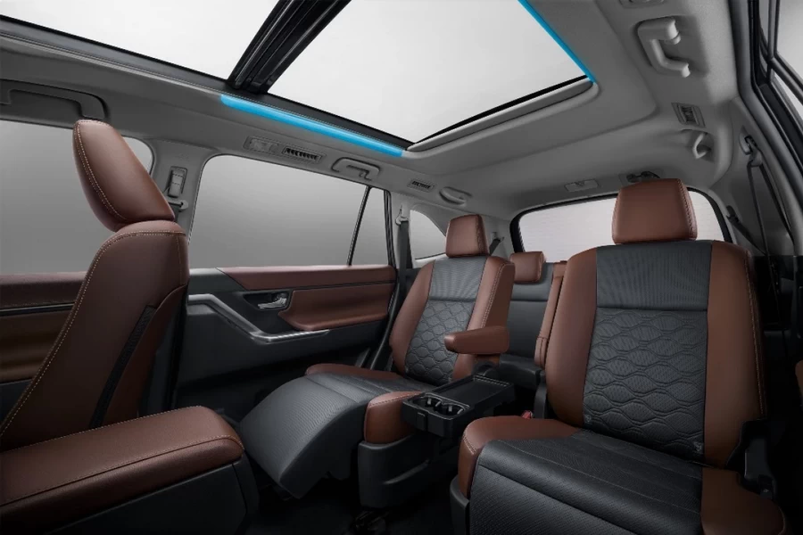 เปิดประสบการณ์ใหม่กับดีไซน์ใหม่ทั้งคัน จากหัวจรดท้าย จากภายนอก สู่ภายใน ทันสมัย กว้างขวาง สะดวกสบายมากยิ่งขึ้น พร้อมฟังก์ชันระดับพรีเมียม เช่น เบาะนั่งคนขับปรับไฟฟ้า 8 ทิศทาง เบาะผู้โดยสารแถวสองปรับไฟฟ้าแบบ “Captain Seat” พร้อมเบาะรองน่องปรับไฟฟ้า และโต๊ะส่วนตัวแบบพับได้ ไฟสร้างบรรยากาศภายในห้องโดยสาร เบาะนั่งแถว 3 พับเรียบเพิ่มพื้นที่เก็บสัมภาระ และสีพิเศษใหม่ Dark Steel Mica พร้อมสิ่งอำนวยความสะดวกล้ำสมัยรอบคัน ช่วยเพิ่มความสะดวกสบาย และอรรถรสในการขับขี่ สร้างความมั่นใจตลอดการเดินทาง ตอบโจทย์ทุกไลฟ์สไตล์คนเมือง สามารถเลือกเป็นเจ้าของได้ 2 รุ่น