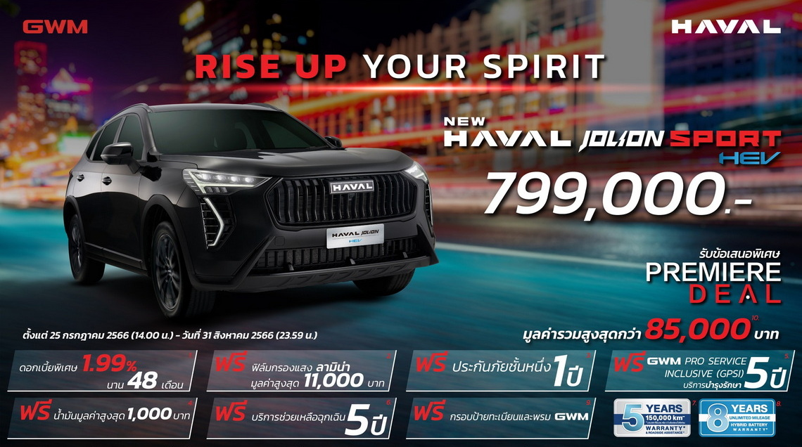 เกรท วอลล์ มอเตอร์ ฉลองครบรอบ 2 ปีของแบรนด์ HAVAL ในประเทศไทย ด้วยการเปิดตัว “New HAVAL JOLION Sport” และประกาศราคาอย่างเป็นทางการต่ำล้านที่ 799,000 บาท ฟรีประกันชั้น 1 ดบ. 1.99% นาน 48 เดือน