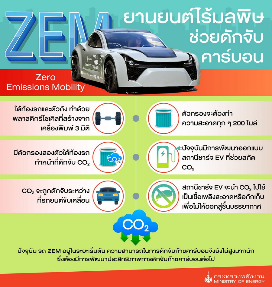 ปัจจุบัน รถ ZEM อยู่ในระยะเริ่มต้น ความสามารถในการดักจับก๊าซคาร์บอนจึงยังไม่สูงมากนัก ซึ่งต้องมีการพัฒนาประสิทธิภาพการดักจับก๊าซคาร์บอนต่อไป