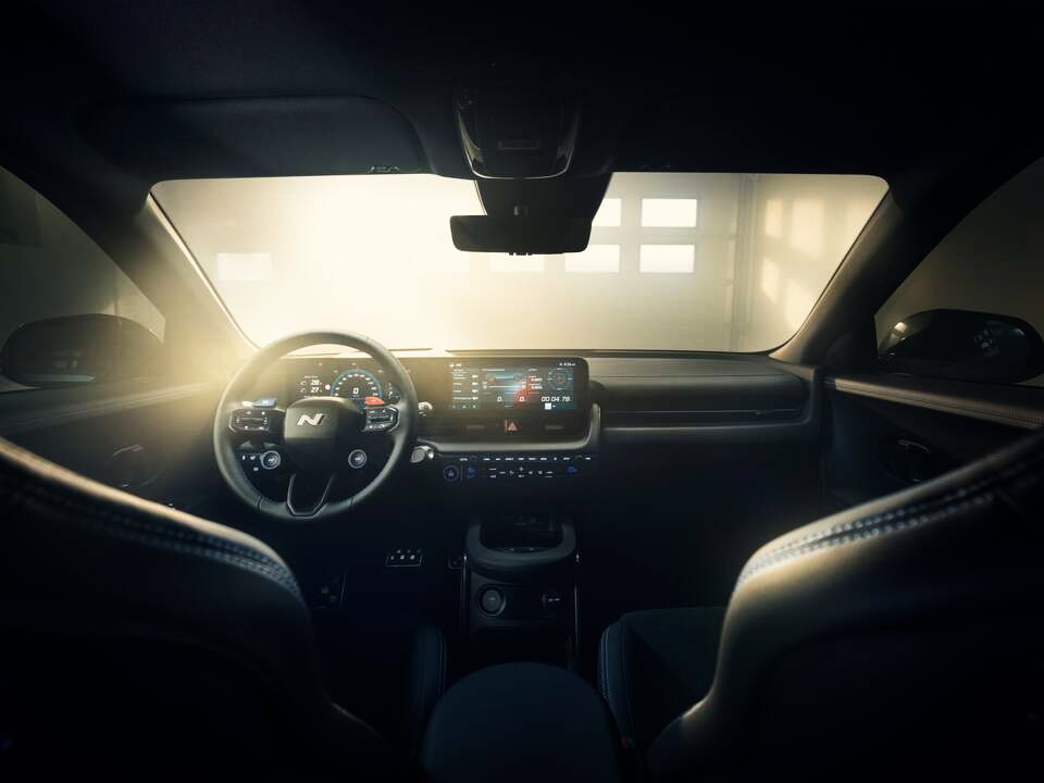ภายในห้องโดยสาร ติดตั้งเบาะทรงบัคเก็ทแบบรถแข่ง พวงมาลัยออกแบบใหม่ พร้อมปุ่ม 4 ปุ่มที่ใช้เลือกโหมดการขับขี่แบบกำหนดเอง ไฮไลท์คือฟังก์ชั่นโหมด NGS หรือ N Grin Shift ซึ่งจะเพิ่มแรงบิดให้อย่างต่อเนื่องในระยะเวลาหนึ่ง ตัวระบบจะจำลองการทำงานในช่วงโอเวอร์บูสท์ของเทอร์โบชาร์จ และเพิ่มแพดเดิลชิฟท์พิเศษสำหรับเรียกใช้งานระบบชาร์จไฟกลับขณะเบรค
