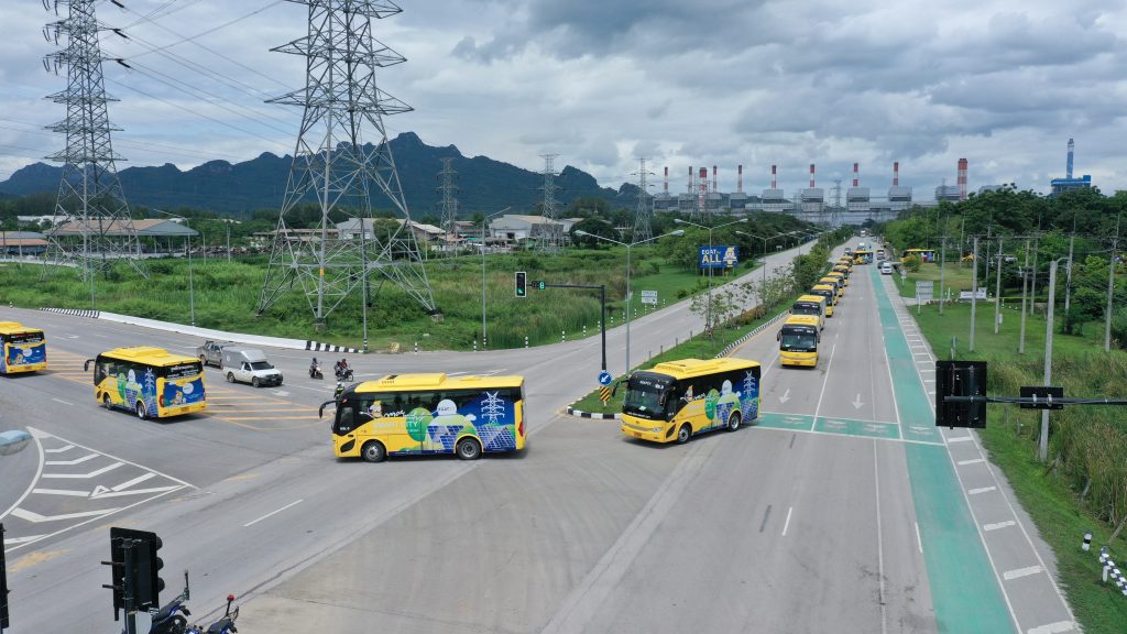 กฟผ. เปิดตัวรถมินิบัสไฟฟ้า 28 คันที่นำมาใช้งานแทนรถบัสดีเซล ที่ อ.แม่เมาะ จ.ลำปาง เพื่อลดปัญหามลภาวะและการจราจร สร้างลำปางให้เป็นเมืองเศรษฐกิจคาร์บอนต่ำ เผยรณรงค์ใช้ยานยนต์ไฟฟ้าในองค์กรต่อเนื่อง เช่น ปรับรถประจำตำแหน่งผู้บริหารเป็นรถยนต์ไฟฟ้าทั้งหมด และจะปรับเปลี่ยนรถของหน่วยงานต่าง ๆ เป็นรถยนต์ไฟฟ้าเพิ่มมากขึ้นในอนาคต