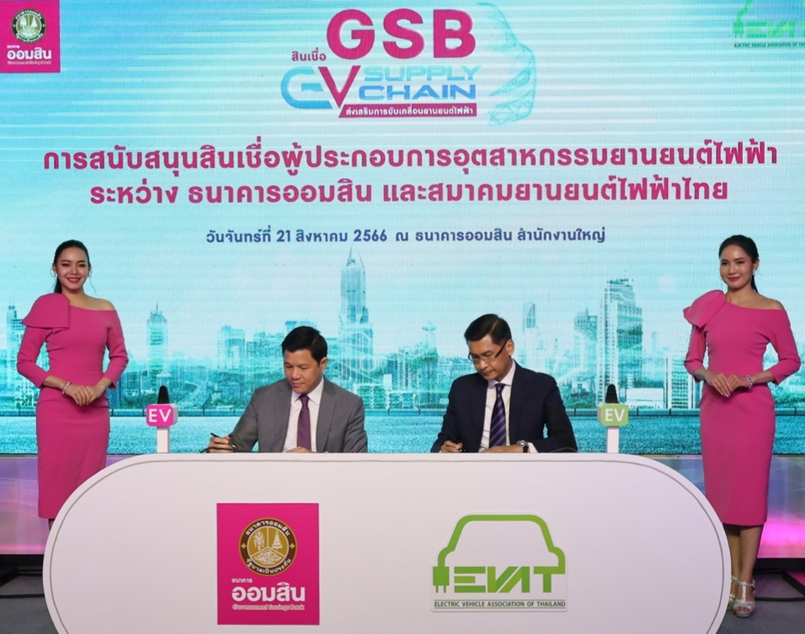 นายวิทัย รัตนากร ผู้อำนวยการธนาคารออมสิน และนายกฤษฎา อุตตโมทย์ นายกสมาคมยานยนต์ไฟฟ้าไทย (EVAT) ร่วมลงนามบันทึกความร่วมมือ สนับสนุนยุทธศาสตร์การใช้โมเดลเศรษฐกิจ BCG ในการขับเคลื่อนการพัฒนาประเทศมุ่งสู่เป้าหมายความยั่งยืน โดยธนาคารออมสินได้ออกสินเชื่อ “GSB EV Supply Chain” ภายใต้การบันทึกความร่วมมือกับ สมาคมยานยนต์ไฟฟ้าไทย ในการส่งเสริมและสนับสนุนการเข้าถึงแหล่งเงินทุนของผู้ประกอบการกลุ่มอุตสาหกรรมยานยนต์ไฟฟ้า Electric Vehicle (EV) และผู้ประกอบการ Supply Chain ของอุตสาหกรรม EV ซึ่งเป็นการผลิตยานยนต์ใช้พลังงานทดแทนเชื้อเพลิงฟอสซิลที่สร้างมลพิษทางอากาศ โดยคาดหวังให้ความร่วมมือดังกล่าวเป็นฟันเฟืองสำคัญในการช่วยขับเคลื่อนแผนพัฒนาเศรษฐกิจที่ภาครัฐให้การสนับสนุนอุตสาหกรรมยานยนต์ไฟฟ้า เพื่อเป็นการผลักดันประเทศไทยก้าวสู่สังคมคาร์บอนต่ำ (Low Carbon Society) และมุ่งสู่เป้าหมายการปล่อยก๊าซเรือนกระจกสุทธิเป็นศูนย์ หรือ Net Zero Emission ได้ตามแผนและนโยบายของประเทศ