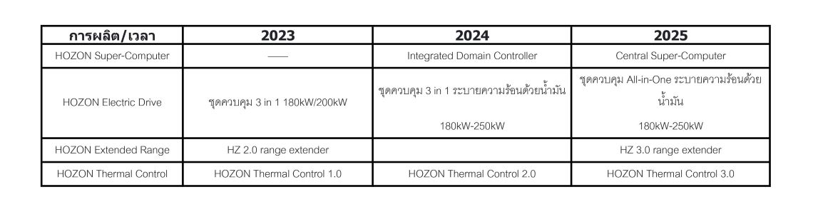 “ระยะแรก: เริ่มการผลิต HOZON Thermal Control System 1.0 ในปีนี้ ระบบ HOZON Thermal Control System มาพร้อมเทคโนโลยีปั๊มความร้อนอุณหภูมิต่ำแบบคู่ ชาร์จแบตเตอรี่เต็มที่ 100% ในเวลาไม่เกินครึ่งชั่วโมง