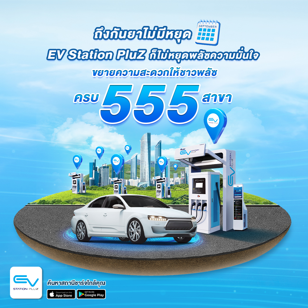 สถานีชาร์จอีวี สเตชั่น พลัซ 555 สาขา เปิดบริการทั้งในสถานีบริการพีทีที สเตชั่น ซึ่งมีทั้งร้านอาหาร ร้านกาแฟ และเปิดตาม Commercial Area อื่นๆ เช่น ห้างสรรพสินค้า โรงแรม รีสอร์ท ร้านอาหาร และอาคารสำนักงาน ช่วยให้คนใช้รถอีวีหมดห่วงเรื่องแบตฯหมด