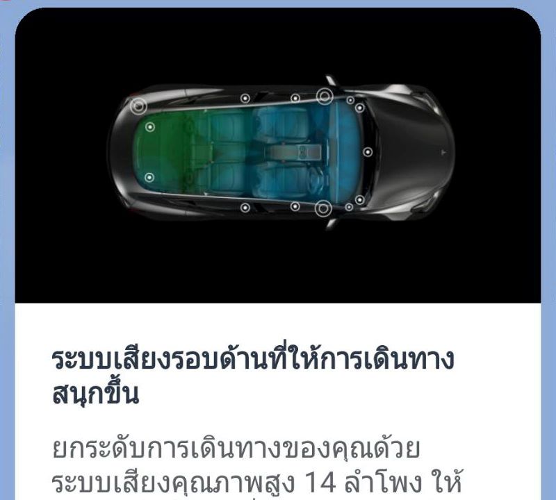 ระบบเสียงรอบทิศทางที่ทำให้การเดินทางสนุกขึ้น ยกระดับการเดินทางด้วยระบบเสียงคุณภาพสูง 14 ลำโพง ให้เทคโนโลยีช่วยเพิ่มประสบการณ์ให้ทุกการเดินทาง ไม่ว่าจะเป็นการเรียกดูแผนที่แบบไม่มีการสะดุด ผ่านหน้าจอสัมผัสขนาด 15 นิ้ว และการอัพเดตซอฟท์แวร์แบบไร้สาย