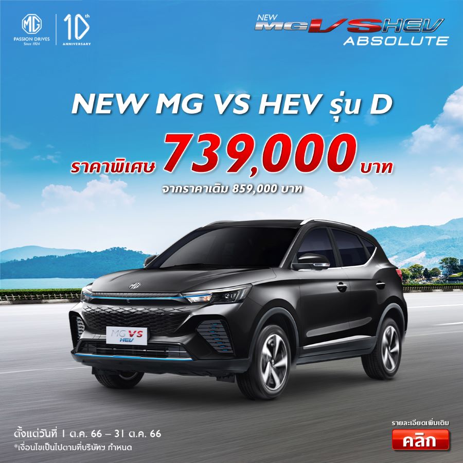 ซื้อ NEW MG VS รุ่น D ได้ราคาพิเศษเพียง 739,000 บาท! (จากราคาเดิม 859,000 บาท) ลดไป 120,000 บาท พร้อมโปรโมชันพิเศษ ฟรี ! ประกันภัยชั้นหนึ่ง พร้อม พ.ร.บ. นาน 1 ปี*/การรับประกันคุณภาพ 5 ปี หรือ 150,000 กิโลเมตร (แล้วแต่อย่างใดอย่างหนึ่งถึงก่อน)*/รับประกันแบตเตอรี่ไฮบริด 10 ปี ไม่จำกัดระยะทาง*/ฟรี! ชุดพรมปูพื้น*