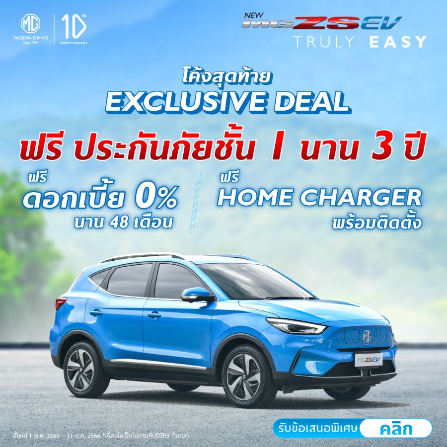 ค่าย MG ออกโปรแรงรับตลาด EV โค้งสุดท้ายปลายปีด้วยข้อเสนอสุด EXCLUSIVE ก่อนหมดมาตรการรัฐ NEW MG ZS EV ฟรีประกันภัยชั้น 1 นานถึง 3 ปี พร้อมโปรดอกเบี้ยพิเศษ 0% ผ่อนชำระนาน 48 เดือน*