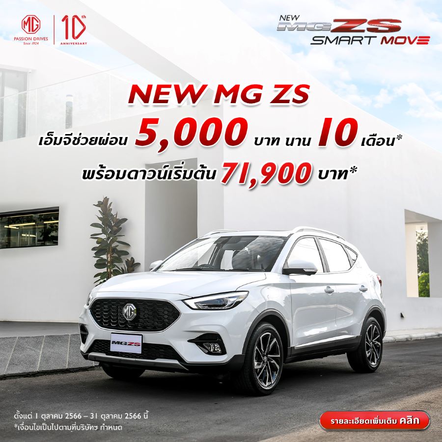 ซื้อ NEW MG ZS เอ็มจีช่วยผ่อน 5,000 บาท นาน 10 เดือน* พร้อมดาวน์เริ่มต้น 71,900 บาท* ฟรี! ประกันภัยชั้นหนึ่ง พร้อม พ.ร.บ. นาน 1 ปี* ฟรี! ชุดพรมปูพื้น* ตั้งแต่ 1 ต.ค. 2566 – 31 ต.ค. 2566