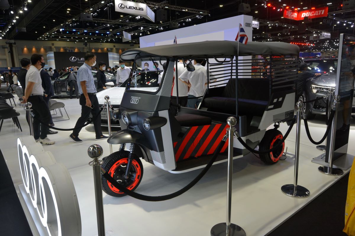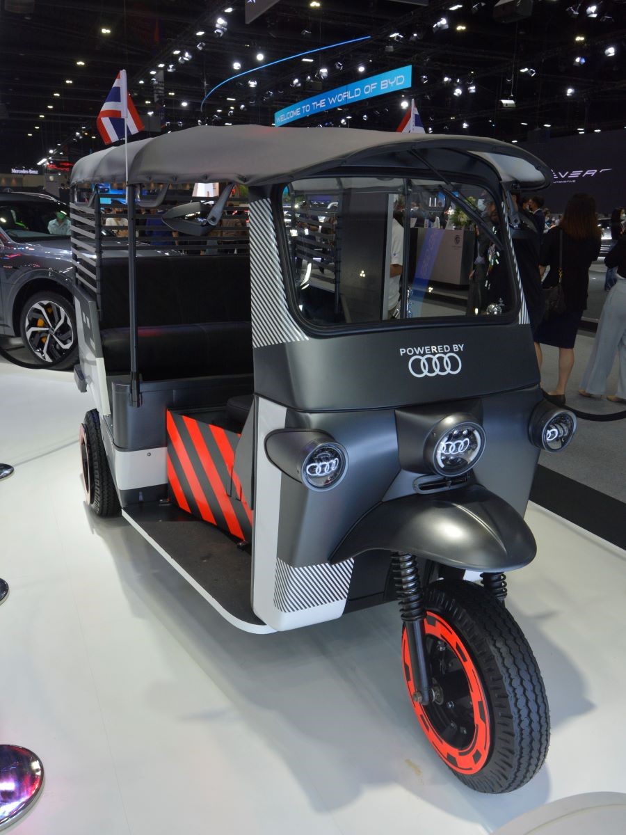 TukTuk ต้นแบบคันนี้เป็นการดัดแปลงการใช้พลังงานจากแบตเตอรี่ของรถไฟฟ้า 100% Audi e-tron ที่ผ่านการใช้งานมาแล้ว นำกลับมาใช้ประโยชน์ใหม่ภายใต้แนวคิด “Second - life Batteries” ตัวรถตุ๊กตุ๊กมีอายุการใช้งานมากว่า 30 ปี ผ่านการปรับโฉมให้ดูทันสมัยขึ้นที่โรงงานในเมือง Neckarsulm ประเทศเยอรมนี