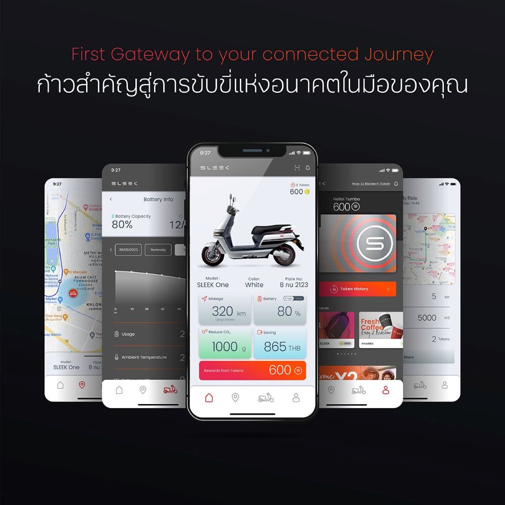 SLEEK EV เปิดตัว SLEEK Application พร้อมฟีเจอร์ใหม่ๆยกระดับการใช้งานมอเตอร์ไซค์ไฟฟ้า ทั้งข้อมูลระดับแบตเตอรี่ ฟังก์ชั่นค้นหาสถานีชาร์จ ตลอดจนสิทธิประโยชน์จาก S Token เพื่อแลกซื้อสินค้าต่างๆ