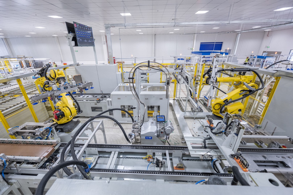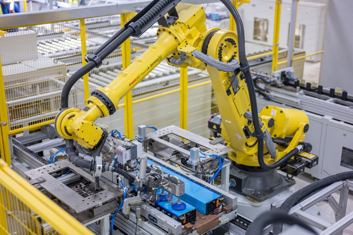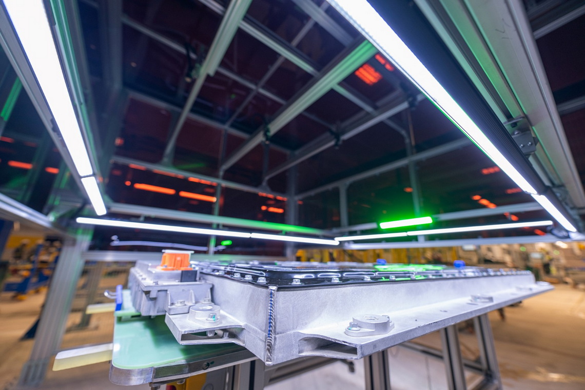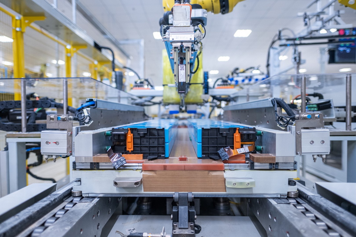 ส่วนการประกอบแบตเตอรี่ ประกอบด้วยสายการผลิตอัตโนมัติที่ทันสมัยอย่างการนำหุ่นยนต์ (Robotic) เข้ามาช่วยในการผลิตเพื่อให้ได้มาตรฐานที่แม่นยำ การเชื่อมโดยเลเซอร์ (Laser Welding) เพื่อให้ได้คุณภาพของการเชื่อมที่ดีการตรวจสอบด้วย CCD (Charge Coupled Device) เพื่อความแม่นยำในการตรวจสอบเทียบกับต้นแบบในทุกขั้นตอนก่อนนำไปใส่ในตัวรถยนต์พลังงานไฟฟ้า 100%