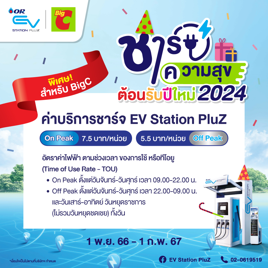 1.ชาร์จความสุขต้อนรับปีใหม่ 2024 กับ EV Station PluZ ที่ BigC คิดค่าบริการชาร์จราคาพิเศษดังนี้