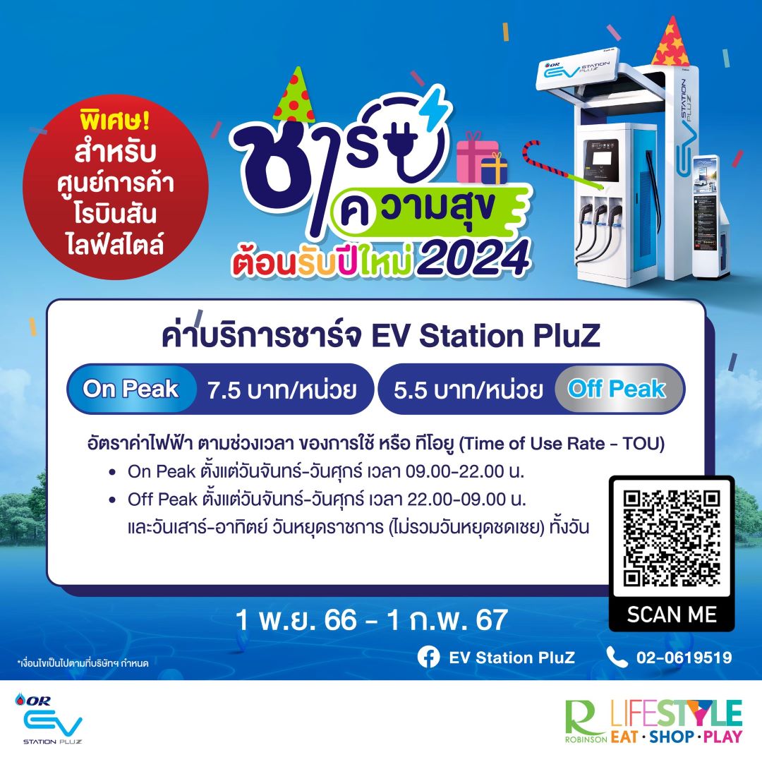 2.ชาร์จความสุขต้อนรับปีใหม่ 2024 กับ EV Station PluZ ที่ ศูนย์การค้าโรบินสันไลฟ์สไตล์ ด้วยค่าบริการชาร์จ ราคาพิเศษ!