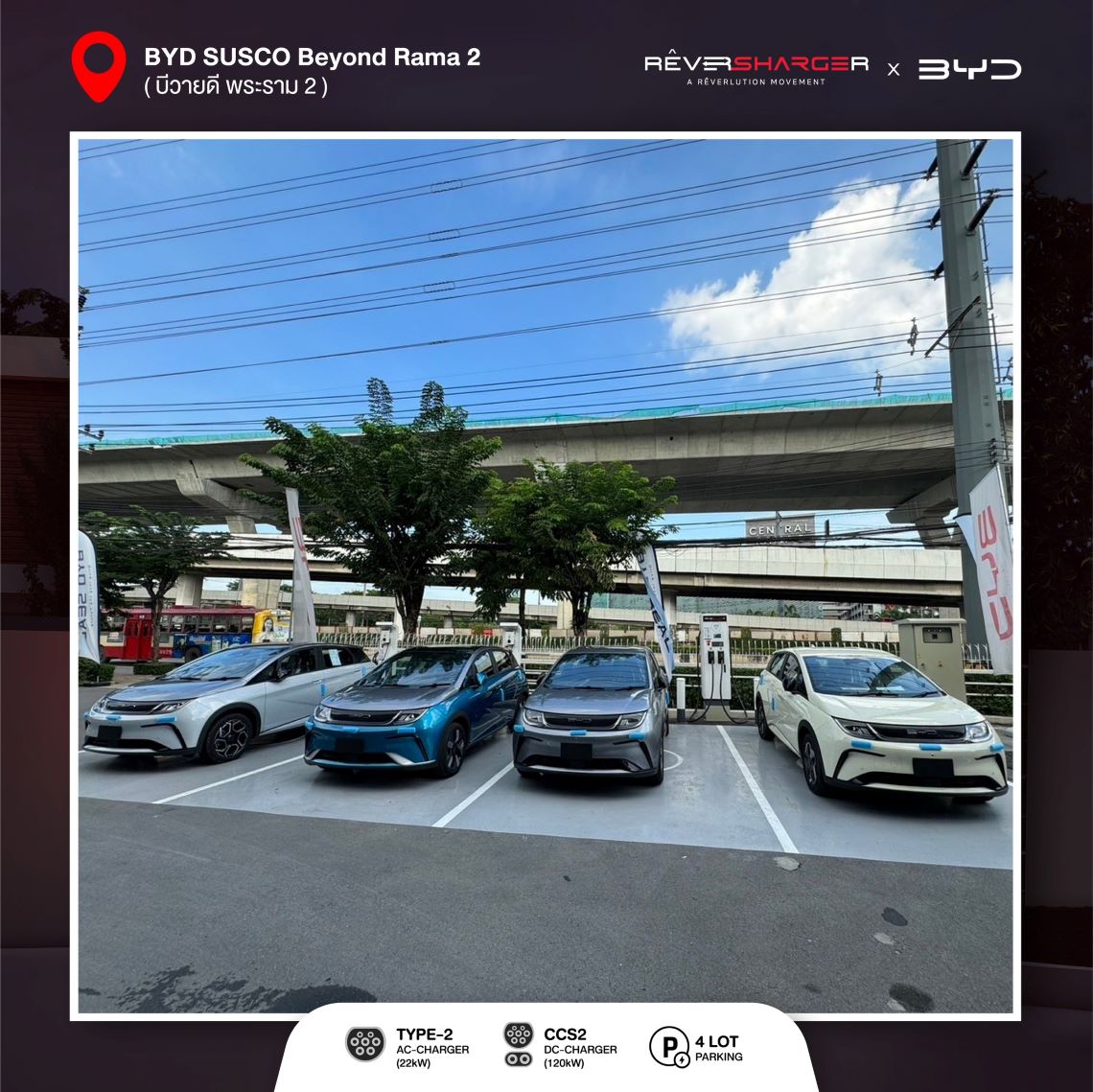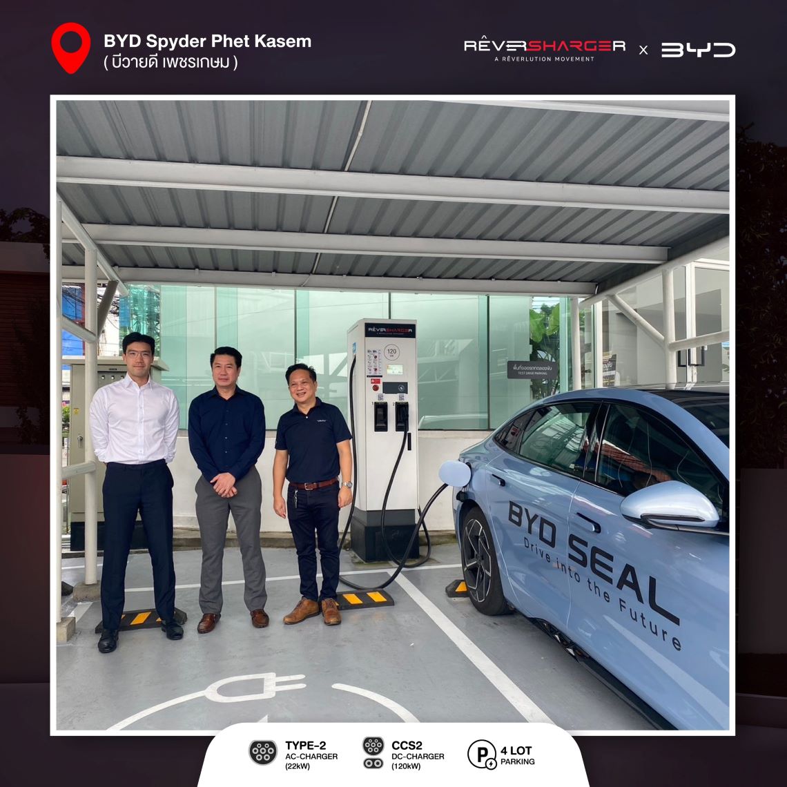 REVERSHARGER ขยายสถานีชาร์จ EV ที่ศูนย์บริการของ BYD ทั่วประเทศ ใช้บริการได้ทั้งลูกค้า BYD และลูกค้ารถแบรนด์อื่นๆที่มี Application REVERSHARGER บนมือถือ เปิดให้บริการได้แล้ว 5 สถานีแรก